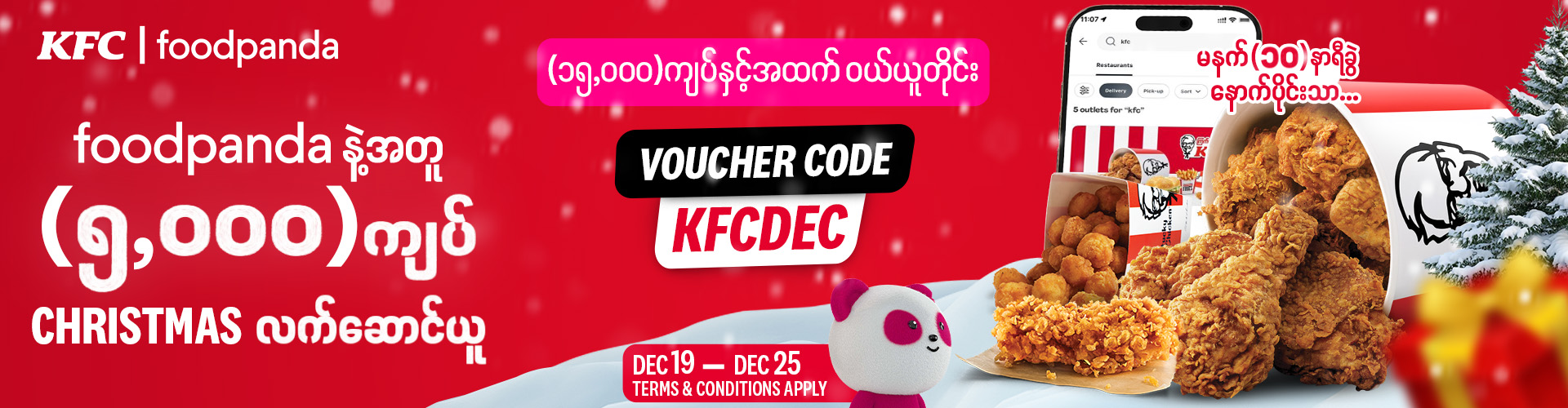 Deal is available for dine-in/takeaway at KFC City Square, Taunggyi and KFC Lashio in everyday and the other stores will be available in every Wednesday, Saturday and Sunday.