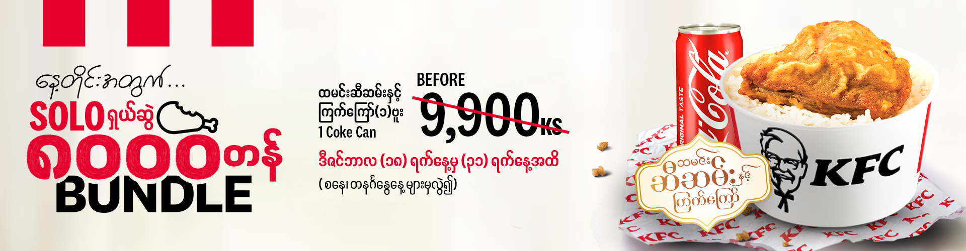 [Available at all KFC stores except Yangon International Airport and Domestic Airport branches]