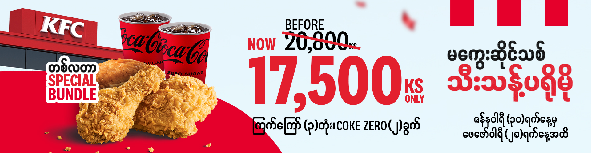 ကြက်ကြော် (၃)တုံး + Coke Zero (၂)ခွက်ကို (၁၇,၅၀၀)ကျပ်တည်းနဲ့အပီကြိတ်နိုင်အောင် ထပ်ပြီးဖန်တီးပေးလိုက်ပြီ။ ချစ်လို့နော် ….