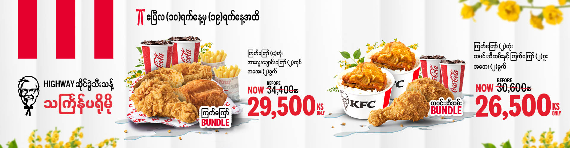ဒီနှစ် သင်္ကြန်ပိတ်ရက် ဧပြီလ (၁၀) ကနေ (၁၉)ရက်နေ့အထိ KFC လေးကလည်း