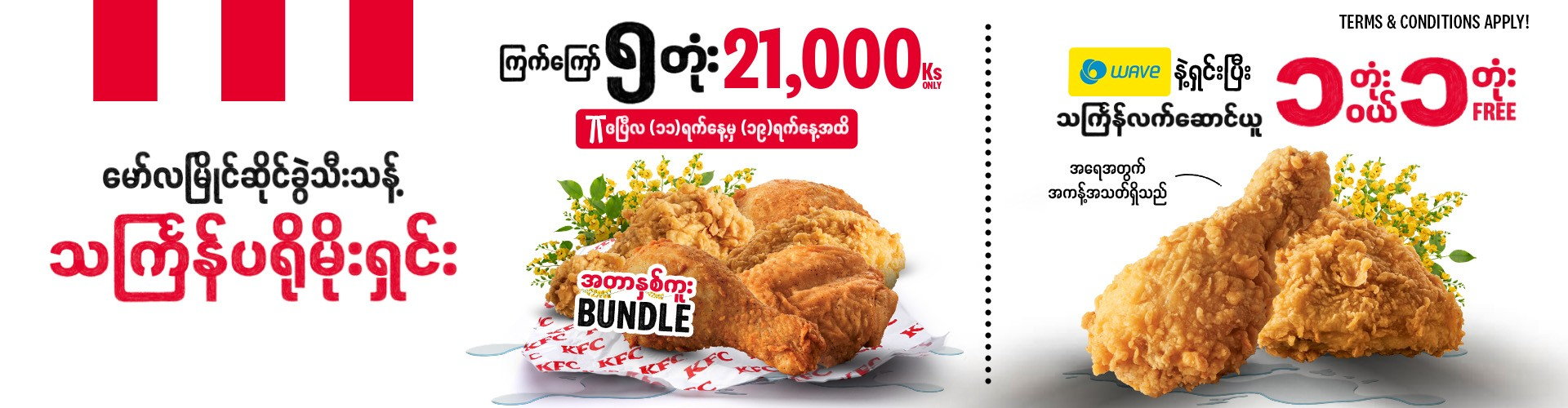 Copyright © 2025 KFC Myanmar. All rights reserved. All promotions on this website are for KFC Myanmar only.
